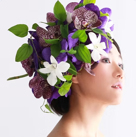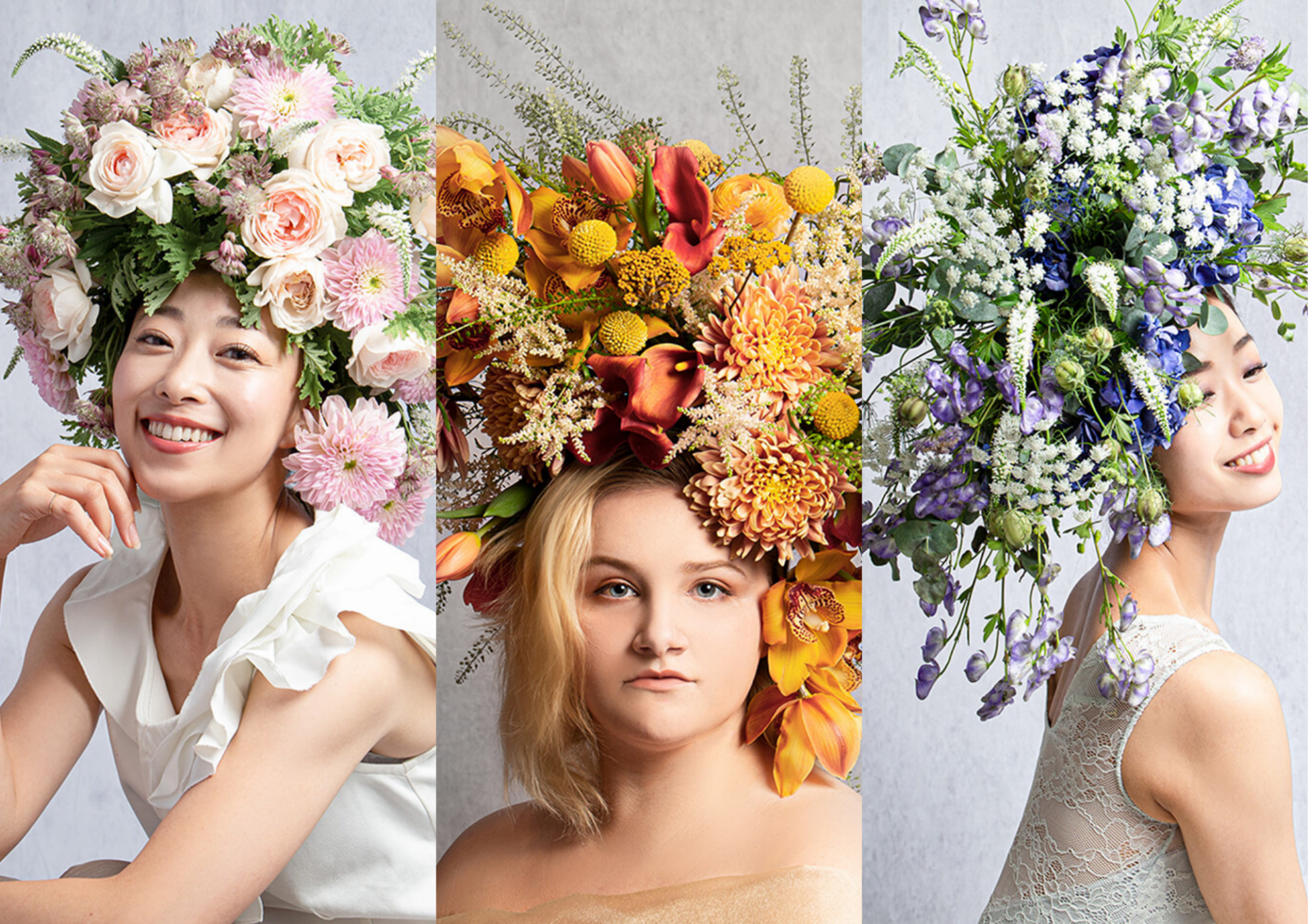 「世界一花を愛せる国を作る」を理念に、頭に花を生ける事で自然と人が共生するための大切さを発信するために撮影しています。