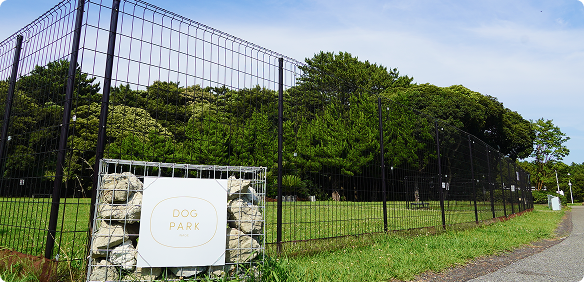 DOG PARK INAGEは潮風を感じながら歩ける散策ルートも大きな魅力のひとつ。日中のドッグラン利用はもちろん、夕方の散策まで楽しめることも、この立地ならではの魅力です。