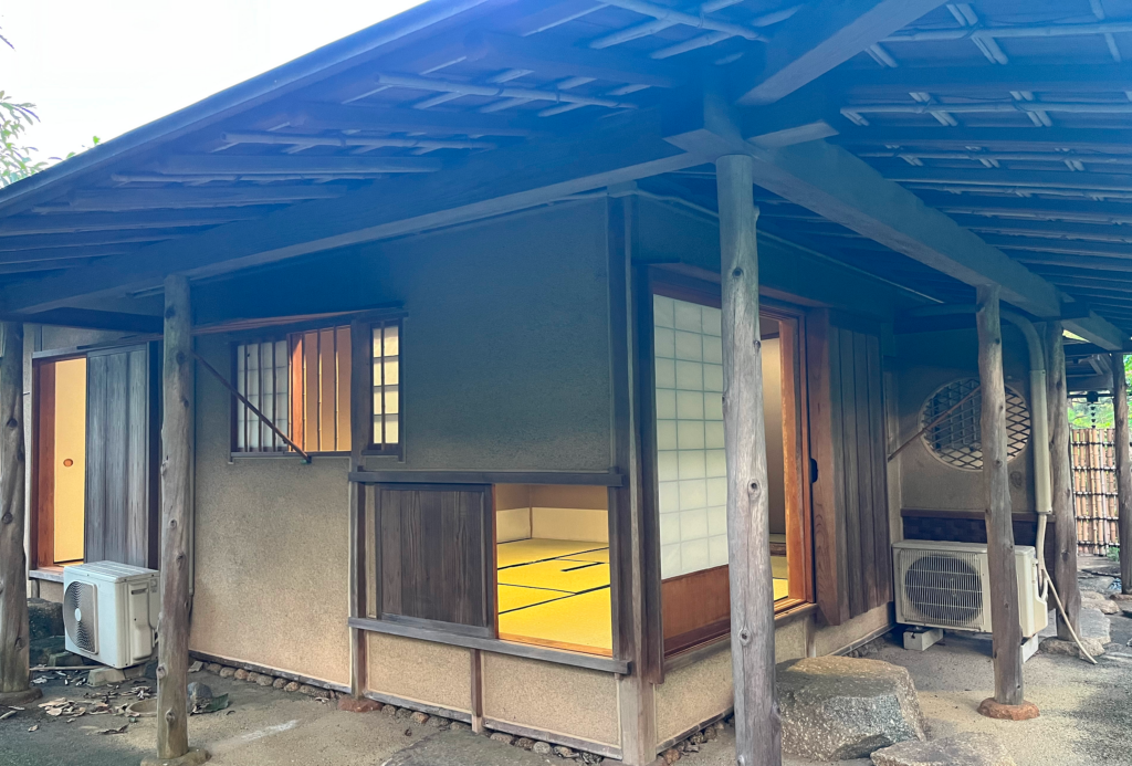 本格的な茶会が楽しめる茶室と、日本庭園