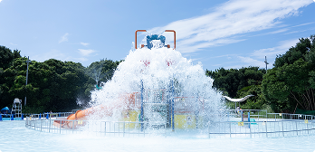水深20㎝前後の浅いプール!噴水シャワーやカラクリバケツから約1,000リットルの水が突然降ってきたり、小さなお子様も思いっきり楽しめる仕掛けが沢山あります。