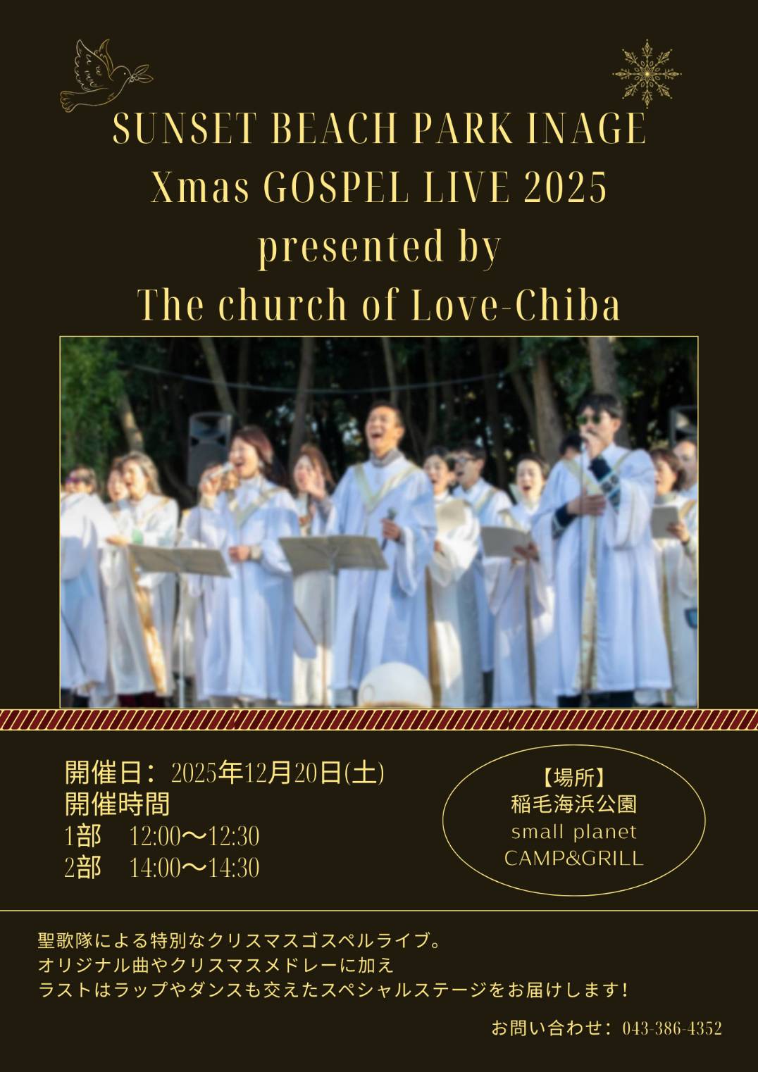 今年も稲毛の海辺に、心温まるゴスペルの歌声が響き渡ります!☆