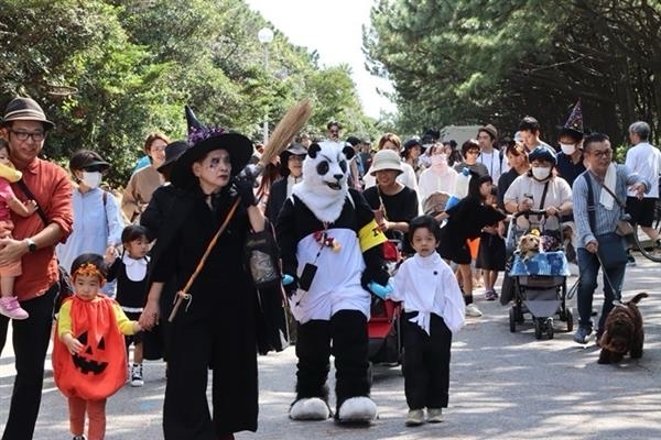 子供、大人、ワンちゃんが仮装をして皆で公園内を歩きます!