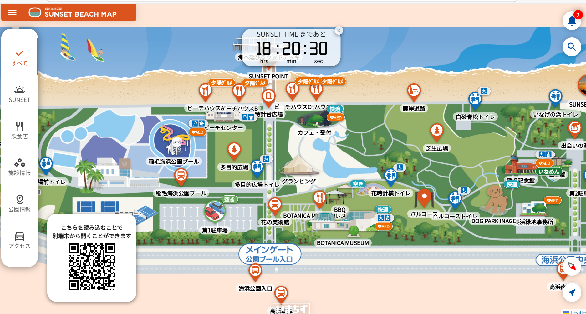 公園内の利便性向上、海辺の魅力発信を目的として、デジタルマップ(SUNSET BEACH MAP) とSUNSET TIME カウントダウン機能 を搭載した新ウェブサイトの公開が決定いたしました!