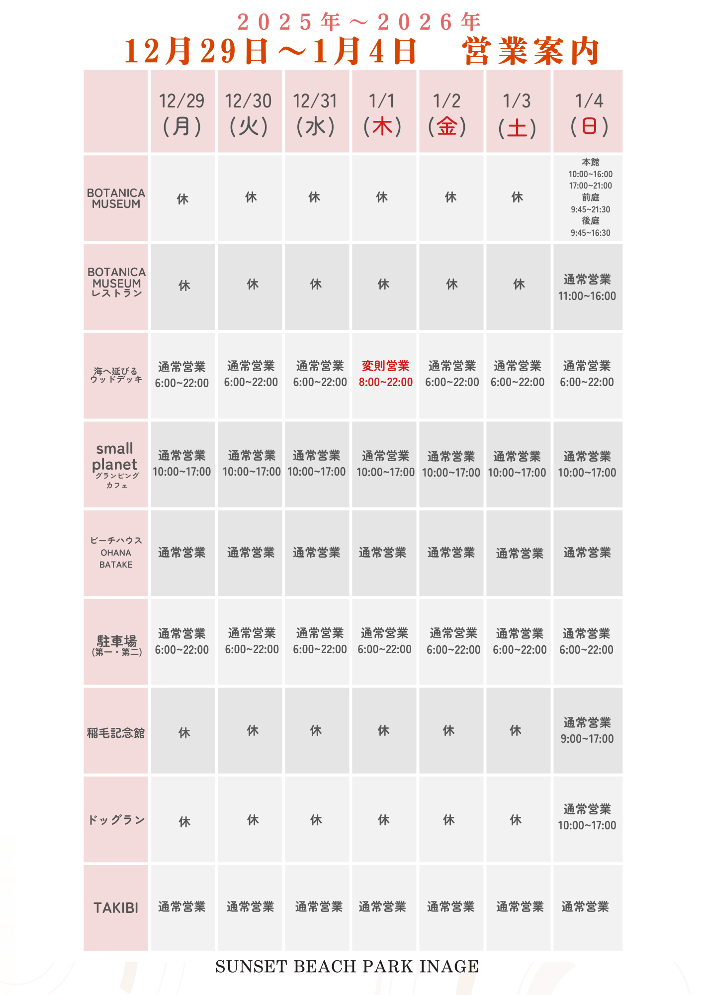 平素より稲毛海浜公園をご利用いただき、誠にありがとうございます。